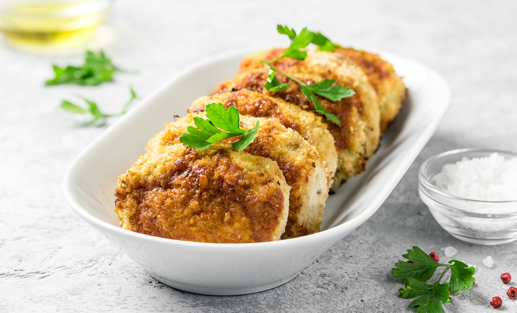 • En un bol gran, barrejar la coliflor cuita amb l’ou, la farina de civada, el formatge parmesà, la ceba picada, l’all, la sal i el pebre negre.