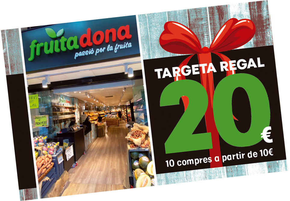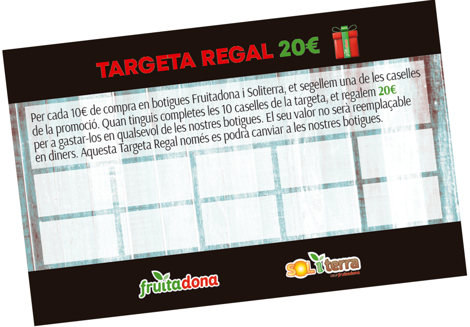 Per cada compra (a partir de 10€) que facis a qualsevol de les botigues FRUITADONA, et segellem una de les caselles de la promoció.